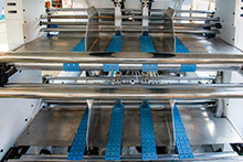 同步輸送帶加上動態側規相結合,確保紙張在行進過程中實現自動定位,同時可不停機調整定位精度。